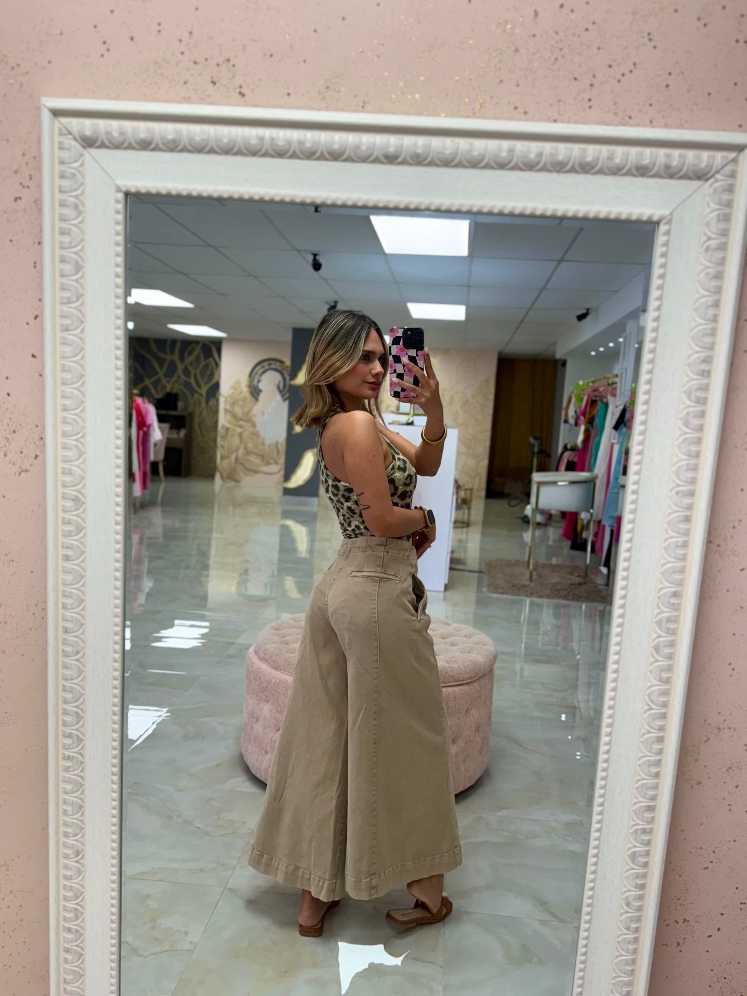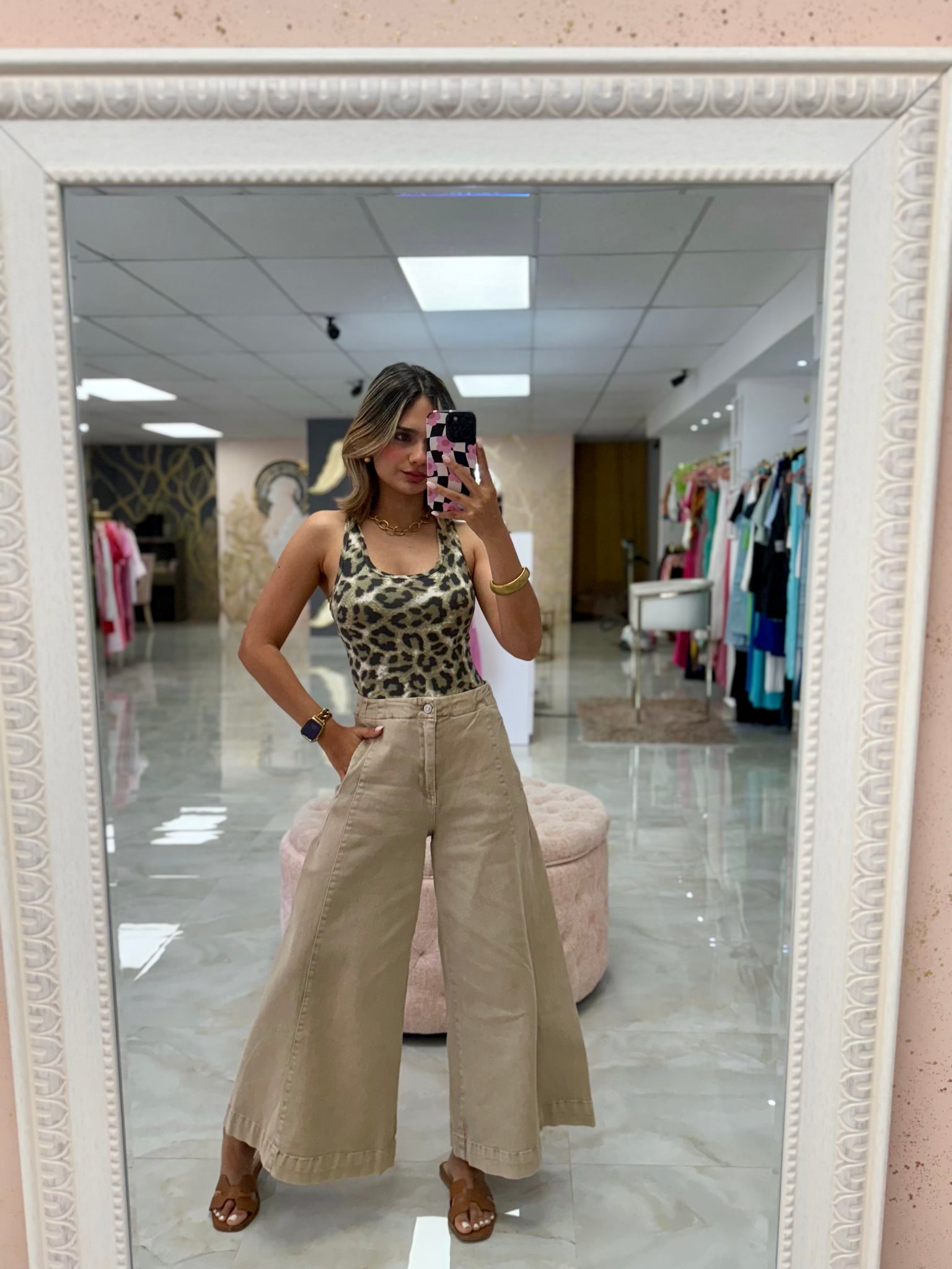 Corre súper al size y estira mucho es spandex