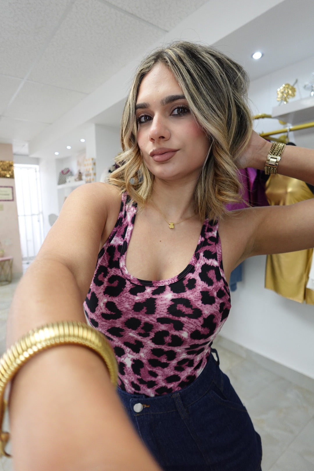Pink animal print bodysuit